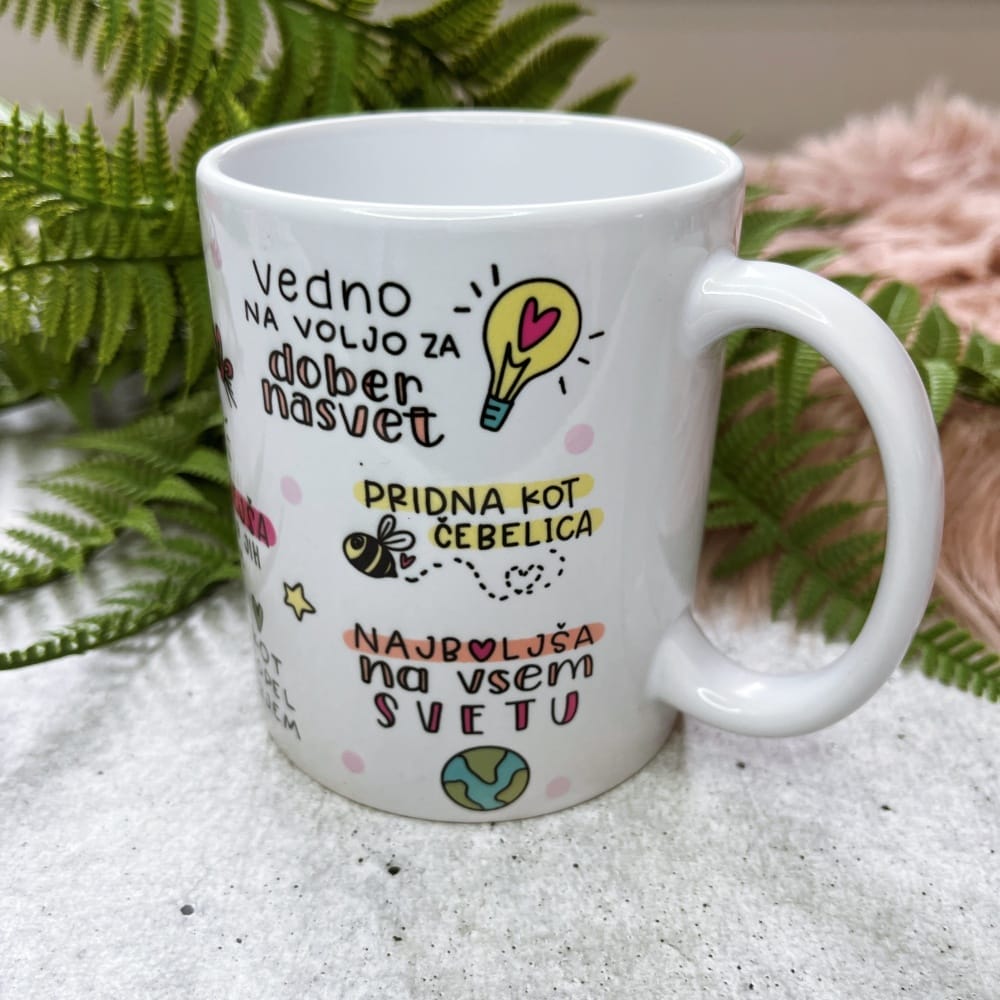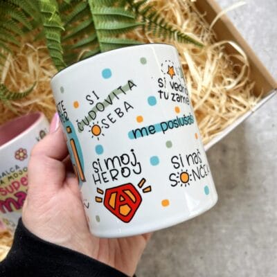 Naše potiskane skodelice so super simpatične! V njih si lahko natočiš 3dl dišeče kavice ali sladkega čaja. Krasijo jih čudoviti motivi, med katerimi boš prav gotovo našel kaj primernega zase. Primerni so za uporabo v mikrovalovni pečici in brez skrbi jih lahko pomiješ v pomivalnem stroju. Sublimacijski print na skodelico je obstojen in večen. Vsaka skodelica je pakirana v svoji škatlici.