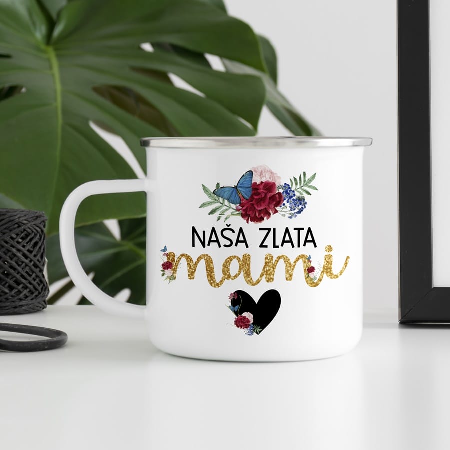 Potiskan emajliran lonček s simpatičnim motivom. Čudovito darilo za mami, ob njenem rojstnem dnevu, materinskem dnevu ali kar tako, da jo spomnimo, kakor radi jo imamo.